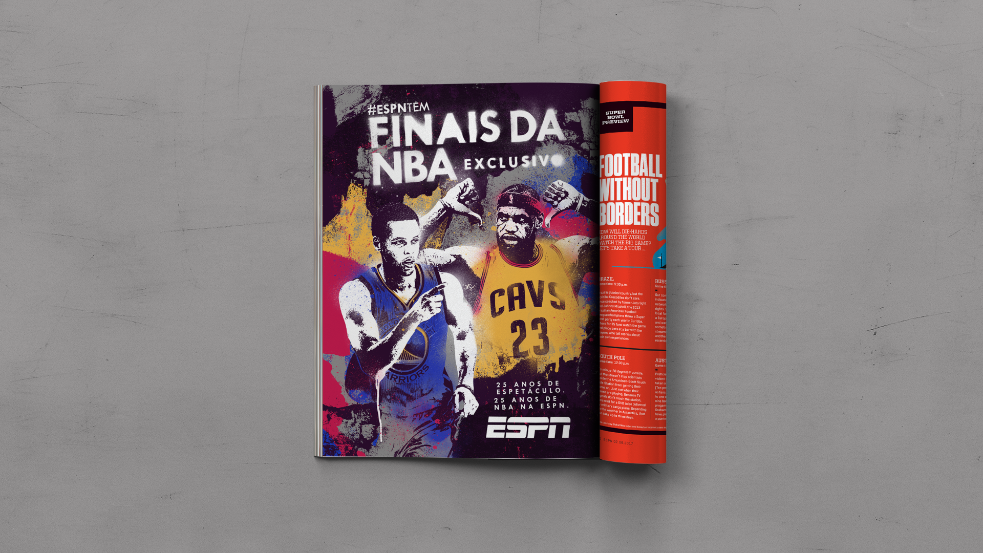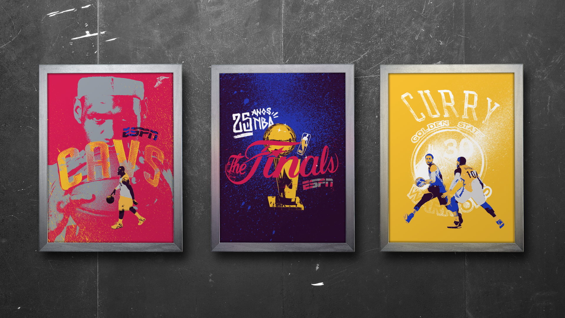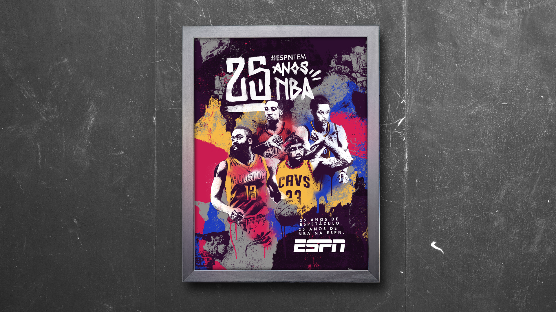 Creating posters for the NBA Finals and the commemorative signature for ESPN's 25th anniversary in Brazil. Project made in collaboration with friend Pablo Blanco, and created during a work period at the Mero studio, with art direction by the Pianofuzz Design Studio.