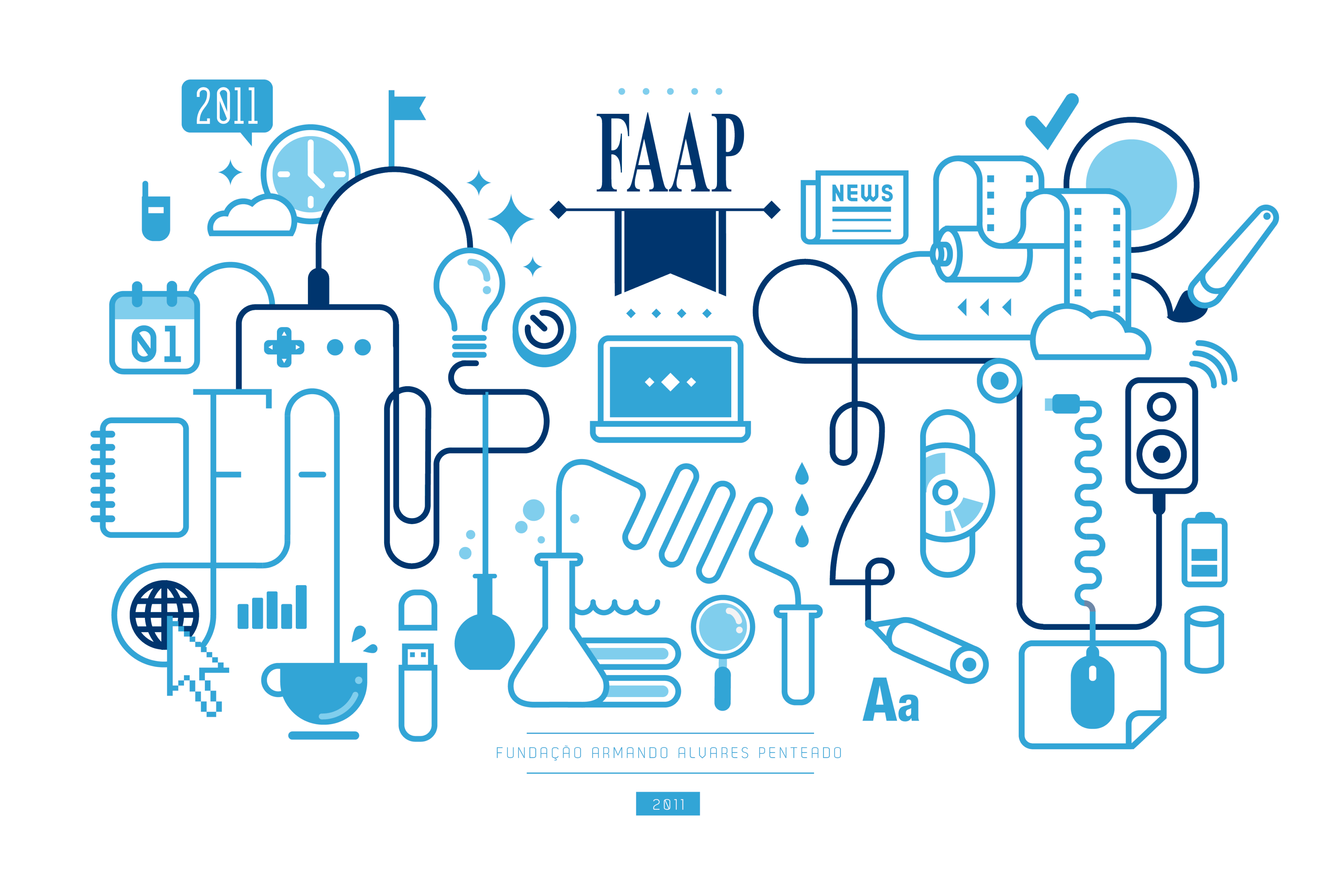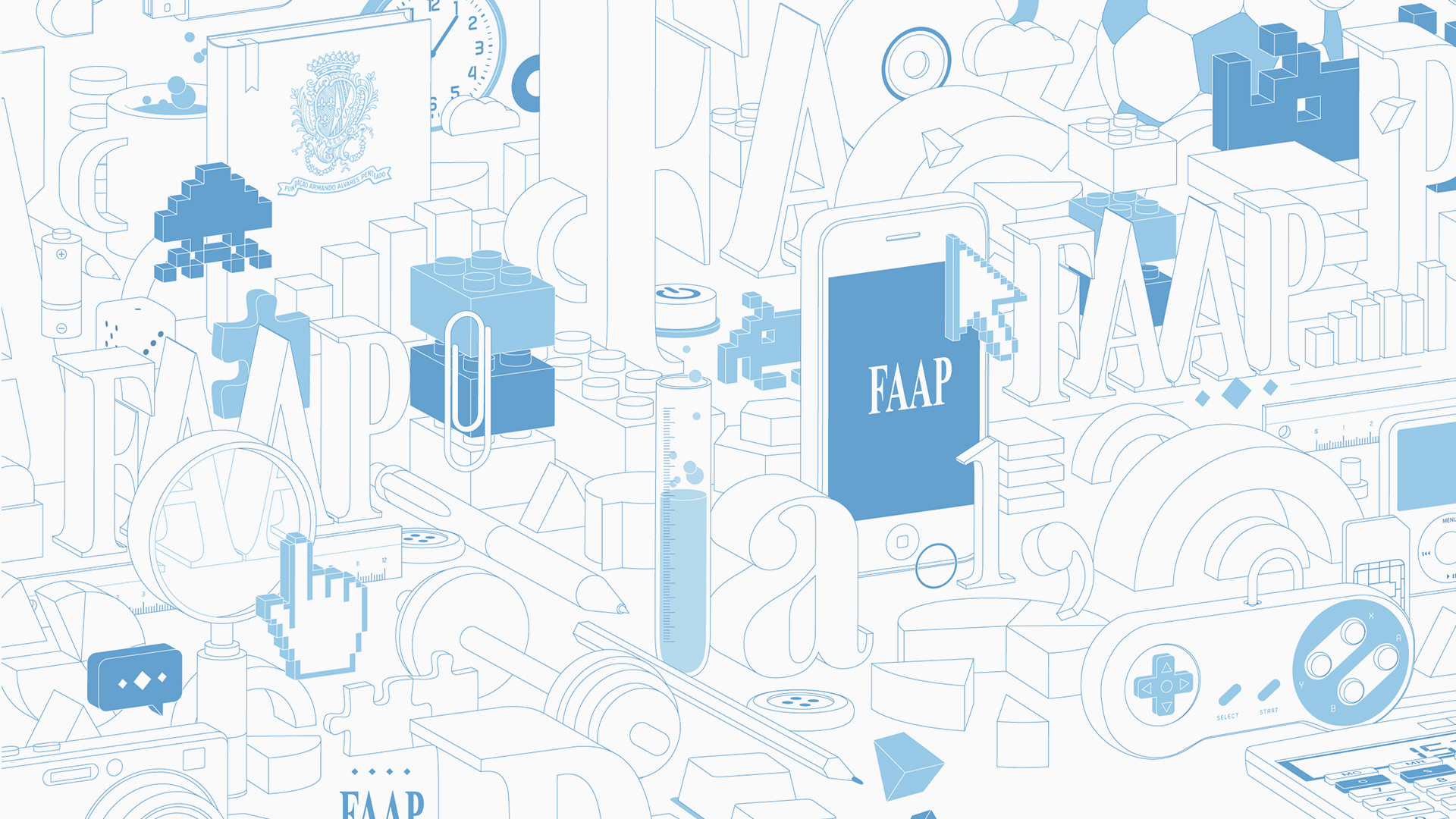 A series of artworks to compose FAAP's style guide, aiming to visually translate concepts related to teaching, knowledge, and learning. The graphic identity was designed to convey dynamism and modernity, emphasizing the institution's academic tradition while connecting young audiences with a creative and inspiring language. Each artwork was designed to be versatile, maintaining aesthetic unity while allowing for applications in different formats and media.